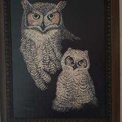Marjorie Brice Owl Painting With Frame$20Ventura, CA