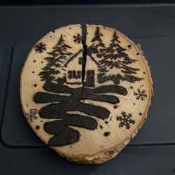 Hand Burned Natural Ash Christmas Scene$30Naval Air Station Point Mugu, CA
