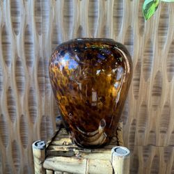 Tortoise Shell Vase Urn Brown Glass Amber Opaque Tartaruga Hand Blown Vintage Spotted Animal Boho $95Camarillo, CA