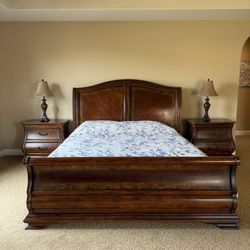 Solid Cherry Wood King Bed, Dresser with Mirror, 2 Nightstands, Mattress $700Simi Valley, CA
