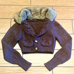 Sisley Brand Size Small Cropped Faux Fur Knitted Cardigan$10West Hills, CA