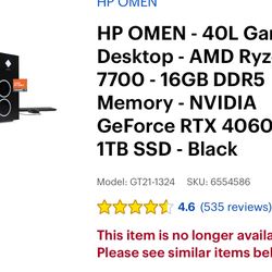 OMEN 40L GAMING DESKTOP $1,300Fillmore, CA