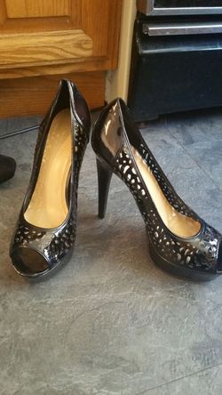 Black Leather Paris Hilton heels- 6 1/2$15Port Hueneme, CA
