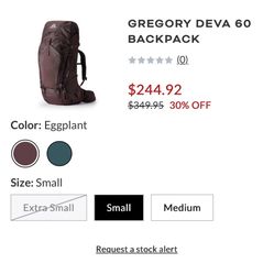 Gregory Deva 60 Small Hiking Backpack $90Ventura, CA