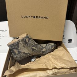 Lucky Brand Beige Snake-Embossed Bhadie Leather Bootie$20Oxnard, CA