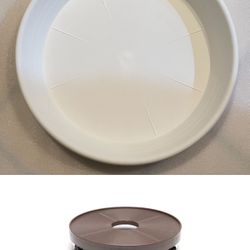16 in. x 16 in. Espresso Plant Caddy, 4 in. Height and set of 2 16” (13.5” Base) Plant Saucers-White Granite color$15Agoura Hills, CA