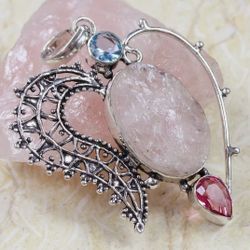 Rough Rose Quartz & Rubellite 925 Sterling Silver Plated Gemstone 2.5" Pendant$15Canoga Park, CA