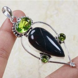 Black Onyx & Peridot 925 Sterling Silver Gemstone 2.72" Pendant$15Canoga Park, CA