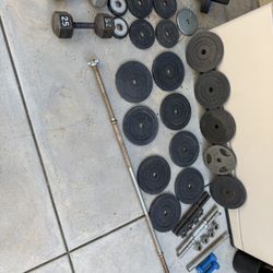 Olympic weight plates and barbell set$160Oxnard, CA
