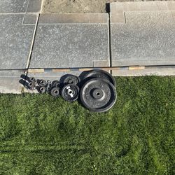 Very Nice Dumbbells 40 And 30 Lb And Very Strong 7 Ft Olympic Barbell, And Olympic Weight Plates$1Hemet, CA