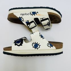 Papillio Eye Print Buckle slide Sandals White Blue Black Womens Size 38/7$45Hemet, CA