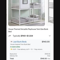 Twin Full Size White Bunkbed With Orthopedic Mattress $649San Jacinto, CA