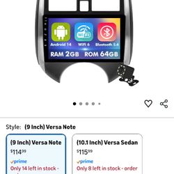Inch IPS Touchscreen Android 14 Car Stereo for Nissan Versa Note 2014-2018 with Wireless CarPlay & Android Auto 2+64GB Car Radio, Support WiFi 6, Blue$65Cathedral City, CA
