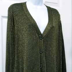 Green Metallic Sweater Cardigan 1X$10Desert Hot Springs, CA