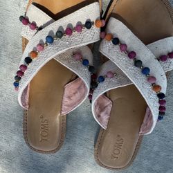 TOMS Women’s Size 7 Beaded Slide Sandals Boho Multicolor Pom Detail$25Palm Desert, CA