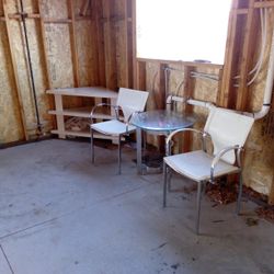 Corner Shelf Table 2 White And Chrome Chairs Leather And Glass Round Table$50Banning, CA