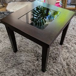 Dark Brown Modern/ Contemporary Side End Table With Glass Insert.$40Thousand Palms, CA