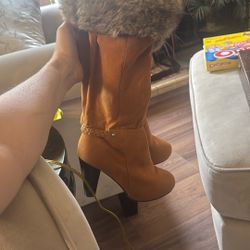 Women’s Long Cognac Boots With Faux Fur Heels 7.5$30La Quinta, CA