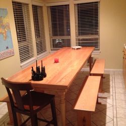 9' Solid Light Wood Dining Table and Four Benches For Sale$200Desert Hot Springs, CA