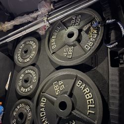 Very nice looking brand new Olympic weight plates and Olympic barbells$110Hemet, CA