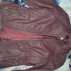 Baccini maroon faux leather moto jacket$10Coachella, CA