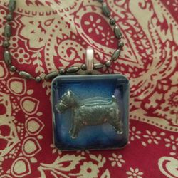 Scottie Dog On Blue Tile Pendant Necklace $12Yucca Valley, CA