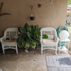 White Rattan Patio Furniture Two Chairs And Table$349Palm Springs, CA