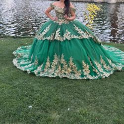XV Quince Emerald Green and Gold Ballgown$850Desert Hot Springs, CA