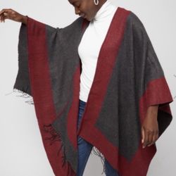 Isaac Mizrahi New York Ruana Cape Wrap / Poncho • Burgundy & Charcoal | One Size | NWT$18Palm Desert, CA
