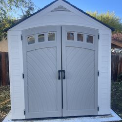 8 x 6ft Resin Outdoor Storage Shed Waterproof Shed with Floor & Two Windows & Lockable Door, Tool Shed for Garden, Patio, Backyard ,Black$850Coachella, CA