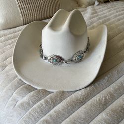 Beautiful Cream Suede Cowboy Hat with Silver and Turquoise Belt - New with Tags$50Indio, CA