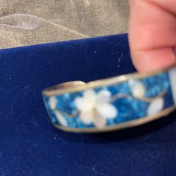 Silver alpaca with inlaid blue turquois design flower cuff$35Indio, CA