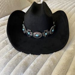 Beautiful Black Suede Cowboy Hat with Silver and Turquoise Belt - New with Tags$50Indio, CA