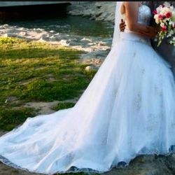 Beautiful Wedding Dress With Head Piece Size 10 $30Hemet, CA