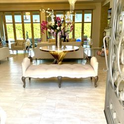 Bench ~ Light Gray Velvet Sitting Bench, Extra Long W/ Nailhead Trim, Tufted Seat On Wooden Frame $175La Quinta, CA