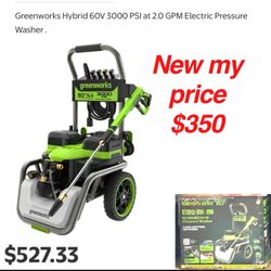 New in box Greenworks Hybrid 60V 3000 PSI at 2.0 GPM Electric Pressure Washer $350 firm cash only East Palmdale off 47th &R8 Address will be provid$350Palmdale, CA