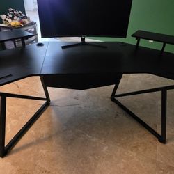 JWX Dual Motor Standing Gaming Desk with Aluminum Alloy Led Lights, 72'' Wing Shaped Large Gaming Studio Music Desk with Slot Design Shelves$200Lancaster, CA