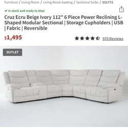 Cruz Ecru Beige Ivory 112” 6 Piece Power Reclining L-Shaped Modular Sectional $1,150Tujunga, CA