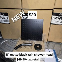 New 8" Matte Black Rain Shower Head Kit $50+tax Retail . My price only $20 each kit$20Palmdale, CA