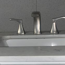 Pfister Venturi 8 in. Widespread 2-Handle Bathroom Faucet in Brushed Nickel Inch Cultured Marble Vanity Top in White with White Sink $150Lake View Terrace, CA