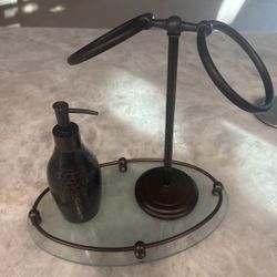 Bathroom Towel Holder Glass Tray And Soap Dispenser$25Canyon Country, CA