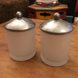Pair Of Small Frosted Glass Containers w/ Metal Lids$8Altadena, CA