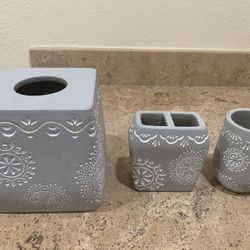 Gray Ceramic Bathroom Set Tissue Cover Toothbrush Holder Tumbler$15Altadena, CA