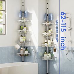 Corner Shower Caddy Tension Pole - 62-115 INCH - 4-Tier Bathroom Organizer Shelves, silver$10Lancaster, CA