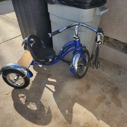 Classic blue tricycle with chrome details. $40Lancaster, CA