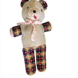 Vintage 23” Large Brown Teddy Bear Carnival Plush Plaid Body 50's 60's $25Pearblossom, CA