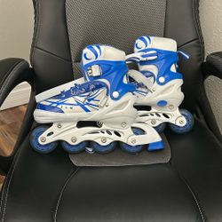 Adjustable Blue & White Inline Skates – Kids Size JSM – Like New$25Quartz Hill, CA