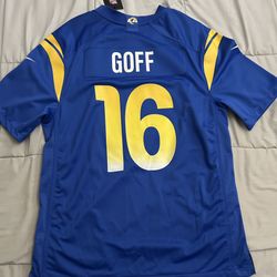 Size L /The jersey shown is a Los Angeles Rams jersey featuring the number 16, which was worn by quarterback Jared Goff during his time with the team.$100Lake View Terrace, CA