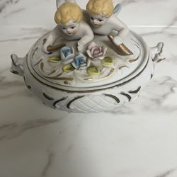 Vintage 1950's Ardco Bisque Porcelain Cherubs Footed Candy Dish w/ Lid MCM$10Lancaster, CA