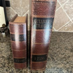 VINTAGE 2 WOOD ANTIQUE LEATHER BOUND BOOK LOOK BOXES GULLIVERS TRAVELS$12Santa Clarita, CA